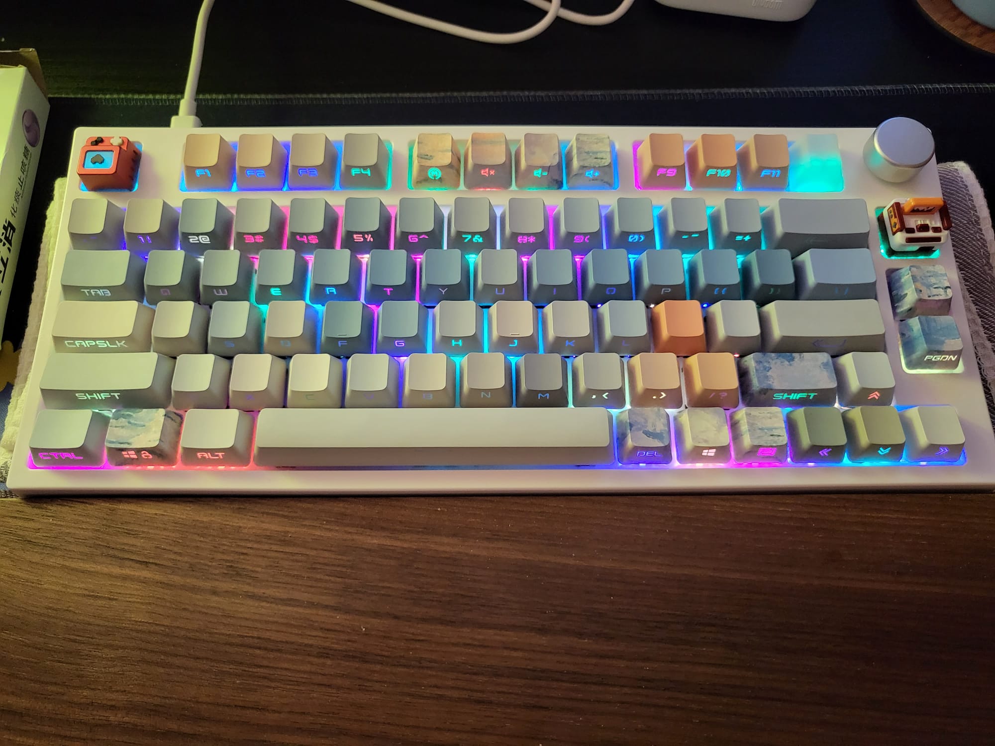 Its plain white plastic case and 75% layout could be mistaken for something from the '90s at a glance, especially if you remove the splashes of color on the space bar, Enter, and Escape keys and go with the white replacements that come in the box. This keyboard uses premium stabilizers that are pre-lubed from the factory, which eliminates the rattling that you get when pressing larger keys. Directly under the switches is a full brass plate, offering extra weight and stiffness, with a layer of sound- and vibration-damping foam between the plate and the circuit board. Under the circuit board is a second layer of foam, further insulating the sound and vibration from the case itself.